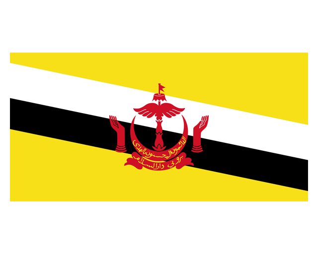 文萊達(dá)魯薩蘭國(Negara Brunei Darussalam),簡稱文萊(Brunei),是一個君主專制國家。首都斯里巴加灣市,國歌《真主保佑文萊》。文萊國旗呈橫長方形,長與寬之比為2:1。由黃、白、黑、紅四色組成。黃色的旗地上橫斜著黑、白寬條,中央繪有紅色的國徽。1906年,當(dāng)文萊還是英國的保護(hù)國時,就制作了文萊第一面國旗——呈長方形的黃色旗幟。旗幟上的黃色代表蘇丹至高無上。后來為了紀(jì)念兩位有功的親王,文萊決定在國旗上加了黑、白兩條斜條。1959年文萊實現(xiàn)自治時制定了第一部憲法,憲法規(guī)定把文萊的國徽圖案繪制在國旗中央。1984年1月1日,文萊宣布完全獨(dú)立,國旗沿用至當(dāng)代。