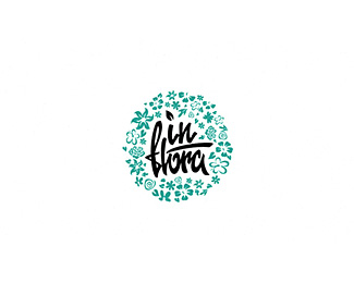 INFLORA花店標志設計欣賞,用花卉的剪影拼接的一個環(huán)形的標志,在環(huán)形的中心是花店的名稱。
