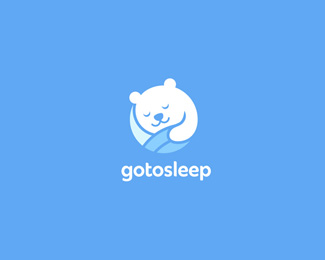 GOTOSLEEP睡衣品牌標志,以一只正在睡覺的熊任務該標志的識別元素,整體以藍色任務主色調。