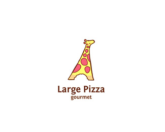 LARGE皮薩店標志,使用長頸鹿和皮薩元素組合的創意。
