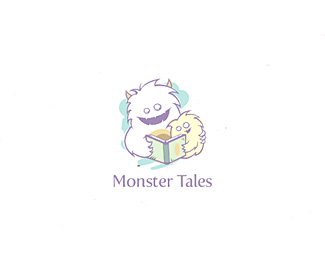MONSTERTALES兒童書店標志,兩只可能的怪獸拿著書本看書是該兒童書店標志的識別圖形。