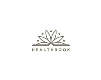 HEALTHBOOK書店標志設計,該標志的主識別圖形由“書”和“花瓣”元素構成。