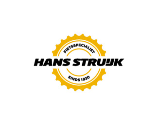 HansStruijk自行車公司標志使用齒輪作為標志的主要創意圖形,以黃色作為主識別色,整體的構圖與字體設計比較現代。