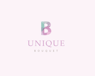 UNIQUE花店品牌標志設計使用字母“B”作為主元素,以色彩層疊的方式呈現,整體色調傾向女性化,符合鮮花店品牌的定位。