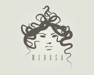 蛇蝎女人logo設計欣賞,該標志的女人頭發都是由蛇組成。