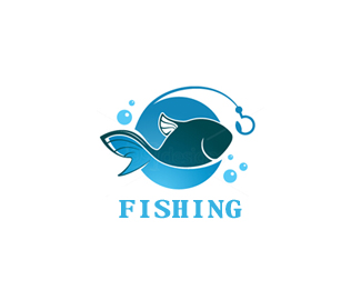 logo為釣魚主題,充滿活力的魚和魚鉤,組合在一個圓形內(nèi),整體感和色彩統(tǒng)一。
