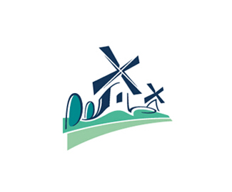 田園風格logo使用具象的素材,風車綠地的組合,以風景如畫的優美姿態,展現田園風光。