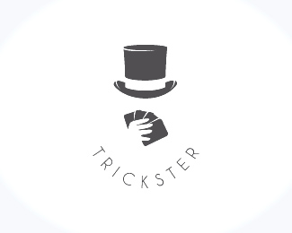 這是一家魔術團隊的logo,logo運用了象征魔術的魔術帽和撲克牌組合而成,而看不見的魔術師則體現了魔術的神秘感;標志單獨的黑色設計,更增強了魔術的神秘之美。