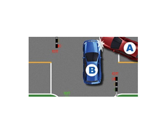 發生如上圖有信號燈的路口右轉車未讓直行的放行車輛造成事故責任認定時,A車全責,有信號燈的路口右轉車未讓直行的放行車輛,要承擔全部責任。