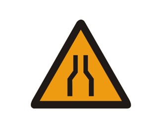 兩側變窄標志主要指沿道路中心線對城縮窄的道路;此標志設在窄路以前適當位置。